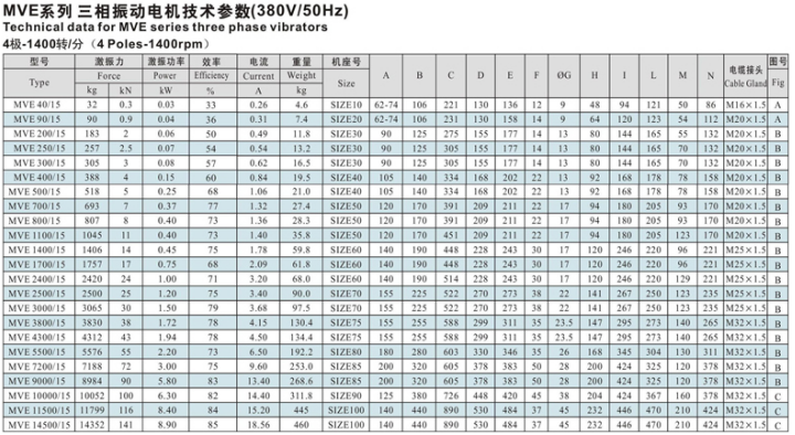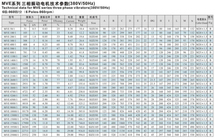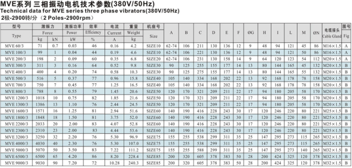 三、MVE系列振動電機技術(shù)參數(shù):