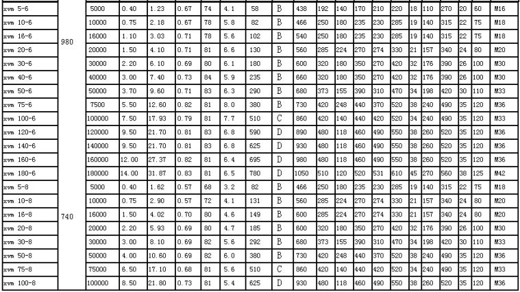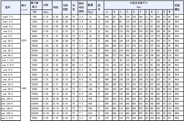 XVM振動電機型號技術(shù)參數(shù)表 :